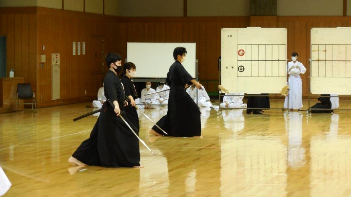 諸手突きでは、あごまで抜き打ちし、中段に下ろして剣先を敵ののど高さにつけるが下がりすぎ下から水月を刺すなど、また指定技全体で切り下ろしが振り下ろす動作となっていて正確さや決め手に欠けていることが見受けられました。