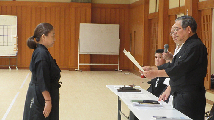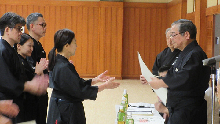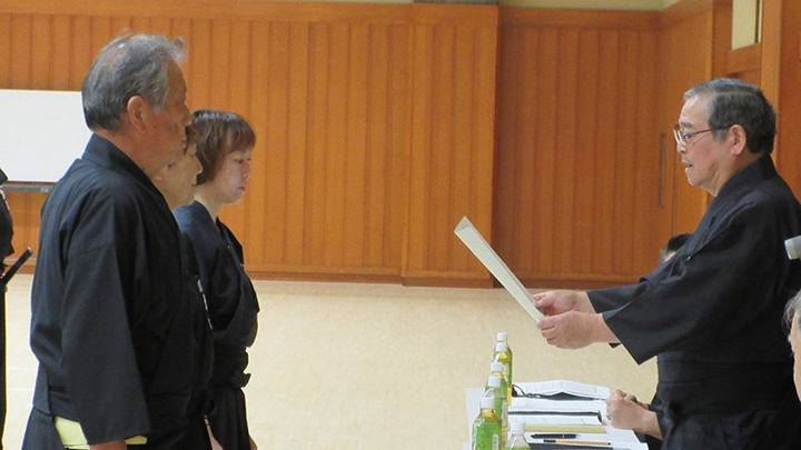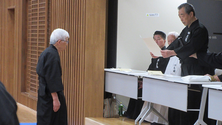 講習会に先立ち、5月に京都で行われた称号審査の合格者への免状の授与がおこなわれました。