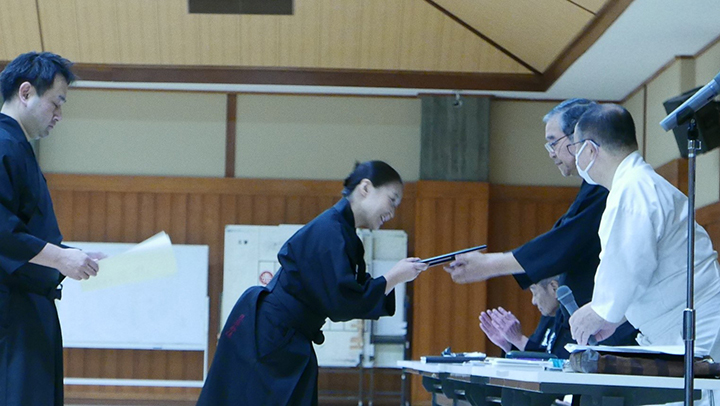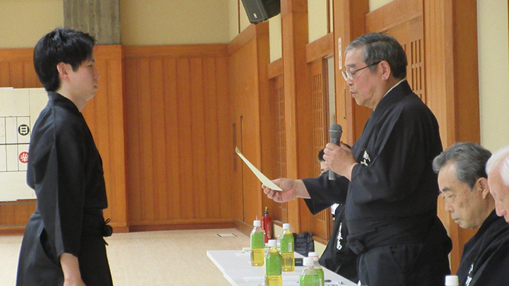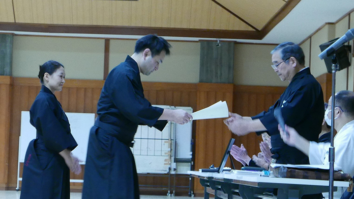 講習会に先立ち、三月に京都で行われた昇段審査の合格者への免状の授与がおこなわれました。