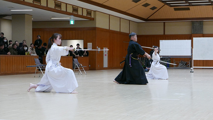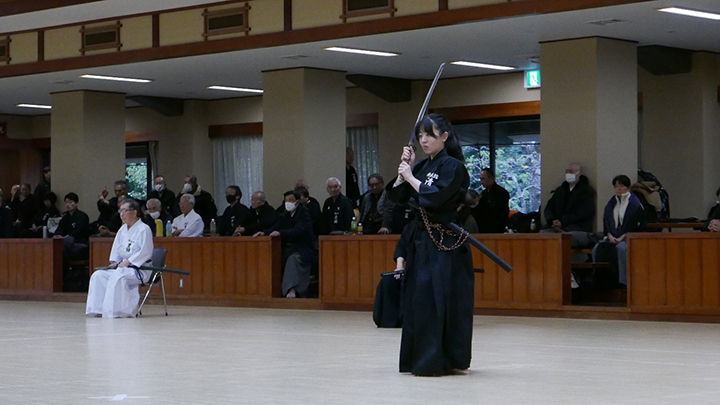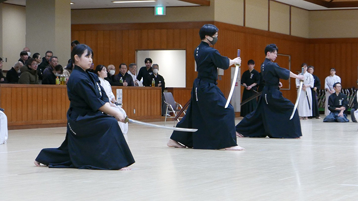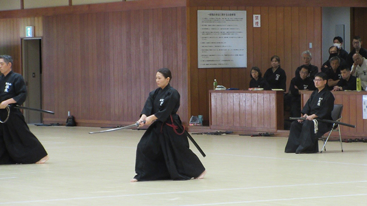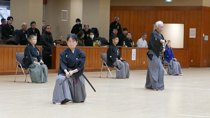 開会式での古市会長の挨拶の後、全剣連居合自由技5本の演武がおこなわれました。