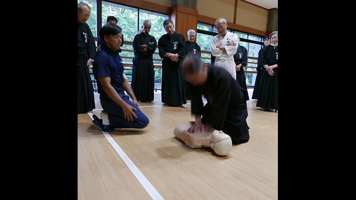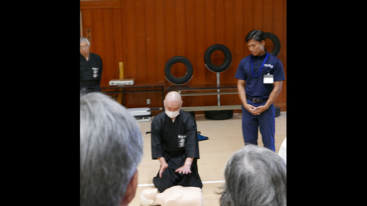 - 梅雨が明けたかと思われるような青空の下、先月茨城県で行われた中央・地区講習会の伝達講習会と救急救命法の講習会が、神奈川県立武道館において行われ256名の会員が参加しました。