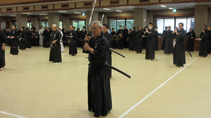ようやく秋らしい風が吹き始めたなか県立武道館において全剣連居合講習会がおこなわれ、209名の会員が参加しました。