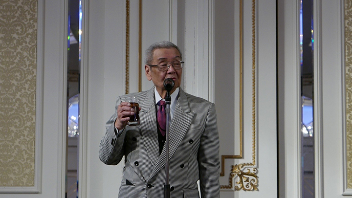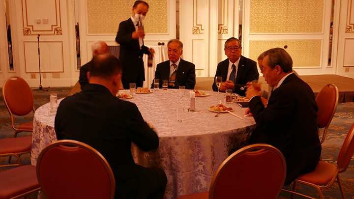 忘年会は石堂範士八段に乾杯のご発声をいただき、ビュッフェスタイルの料理とお酒に話の花が咲き、カラオケなどで和気あいあいとしたなか、清田範士八段にご挨拶をいただきお開きになりました。