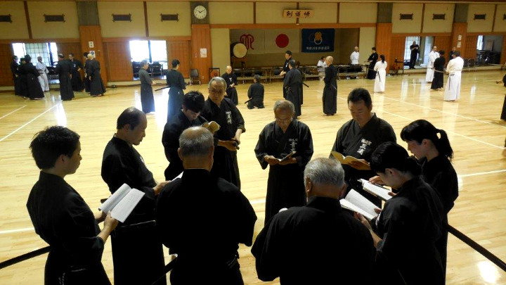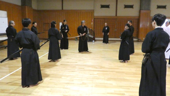 講習会では、受講者は初段以下から六段まで6班に分かれ、更に少グループとなって講師から武道として合理的な居合を抜くための注意事項や、教本を読みながら各技の動作や審査上の着眼点を確認しながら、繰り返し稽古を行って技の習得に努めた。講師は八段5名と七段が担当した。