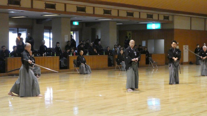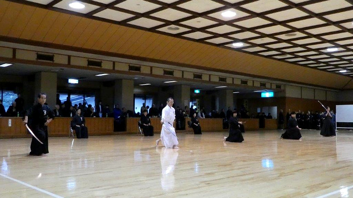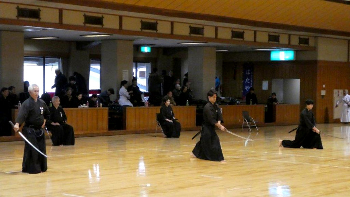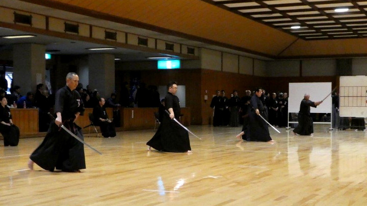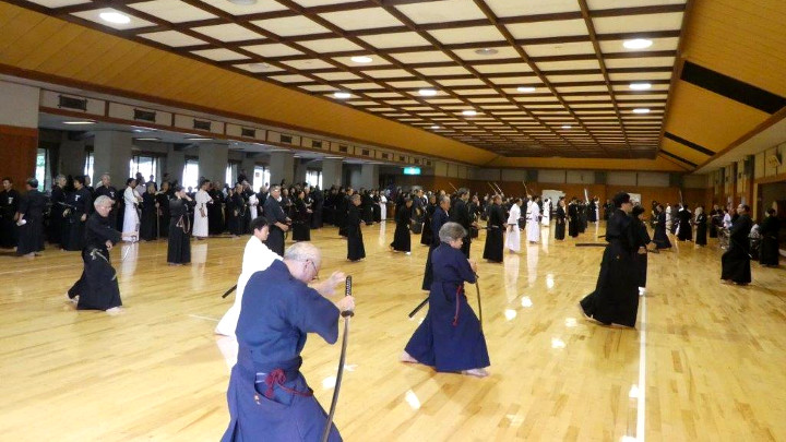 代表選手選考会は、五段18名(4組)、六段15名(3組)、七段9名(2組)が参加して午後1時から行われた。指定技は、古流2本に全剣連居合「諸手突き」「三方切り」「四方切り」。