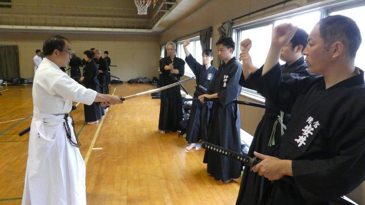 講習は八段と七段が担当した。受講生は段別に6班に分かれ、伝達内容を各講師から細部にわたって説明を受け、繰り返し抜いて技の習得に努めた。
