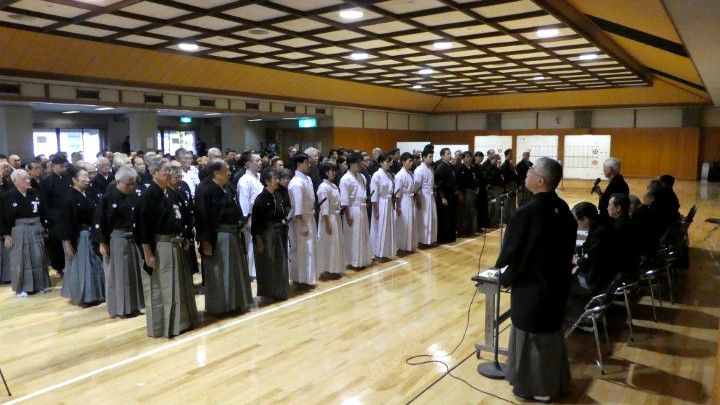 また、先月茨城県で行われた第53回全日本居合道大会で団体総合第二に入賞したと発表され、監督と代表選手の活躍を称えた。