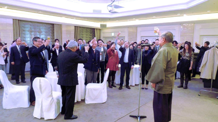 5時から新横浜駅近くのホテルで恒例の居合道部忘年会が開かれた。カラオケタイムあり全日本と関東大会の代表選手による仮装パフォーマンスありなどで大いに盛り上がった。82名の会員が楽しくにぎやかに年末の一夕を過ごした。