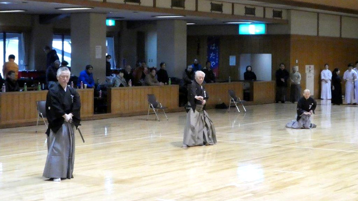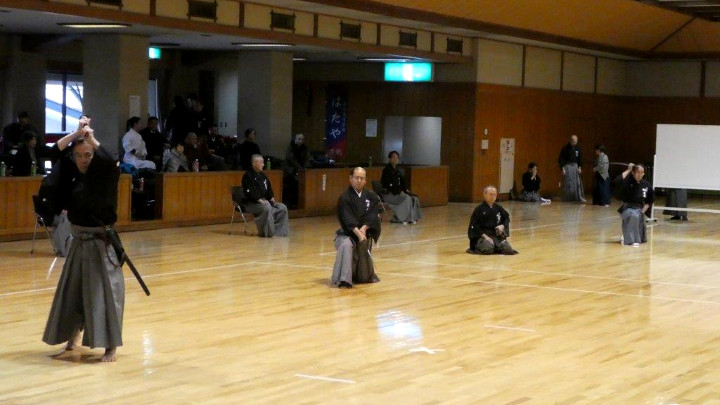 日頃から十分に稽古してきた成果を存分に発揮した演武内容であり、普段見ることの少ない多様な技は今後の稽古や全剣連居合の稽古においても大いに参考となるものであった。