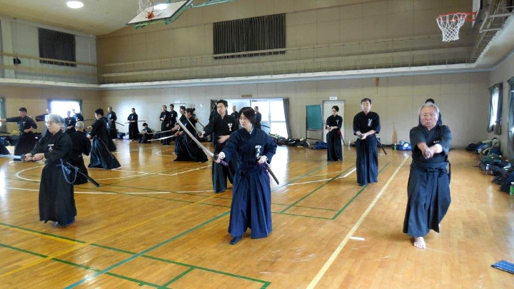 - 全剣連居合講習会が県立武道館で開かれ、145名が参加した。