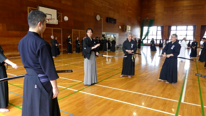 これらの変更部分を久保範士が解り易く説明し、仲田教士が変更した動作を正確にときにゆっくりとした動作で演武して変更点の伝達が行われた。休憩を挟んで一本目から実技の伝達は3本ごとに行われ、受講生からの質問もその都度受け付け久保講師が解説して全員で確認を行った。