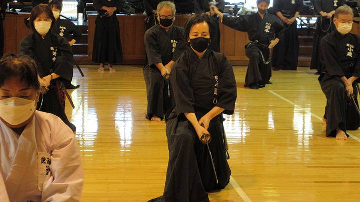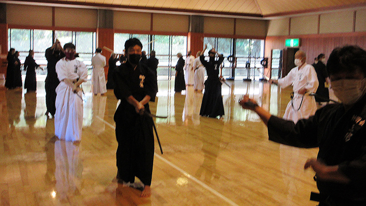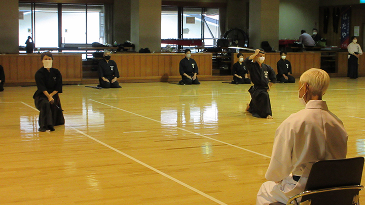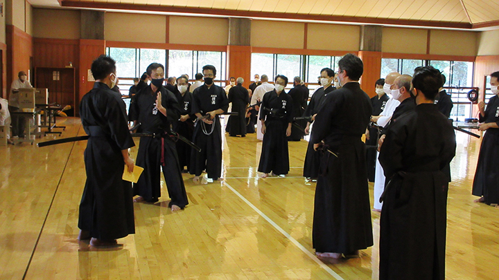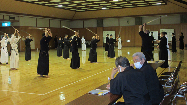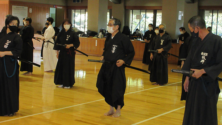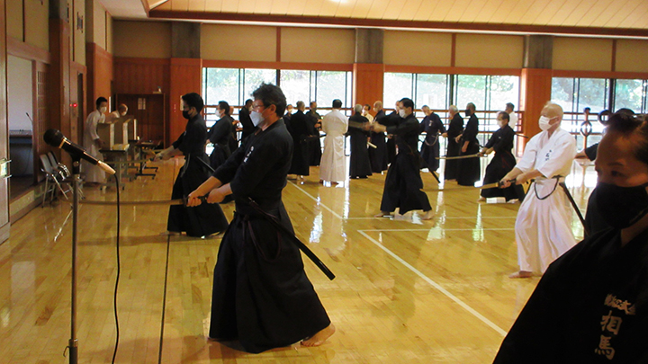 - 梅雨時の蒸し暑い中で全剣連居合講習会が県立武道館において開催され、86名の会員が参加した。入館時には感染症予防対策として検温と手指消毒を行い、武道館利用申告書を提出した。