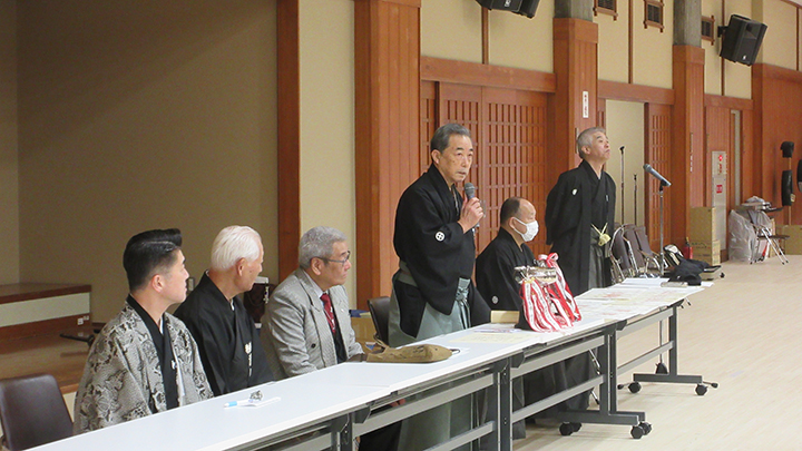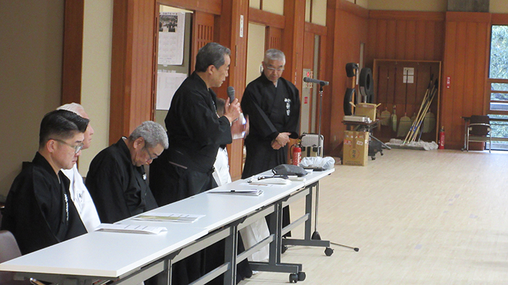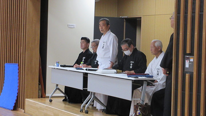 久保会長は開講挨拶の中で、10月に行われた第59回全日本居合道大会の結果を改めて披露し、優勝した選手・監督を労いました。また、最後まで怪我のないよう安全に配慮して稽古してほしいと述べました。