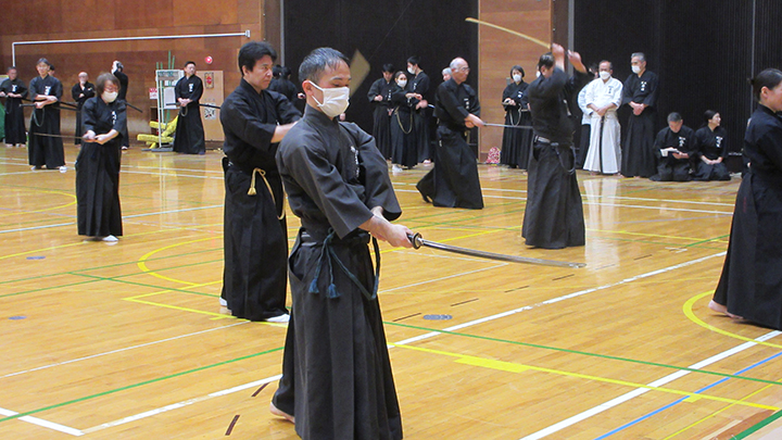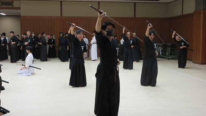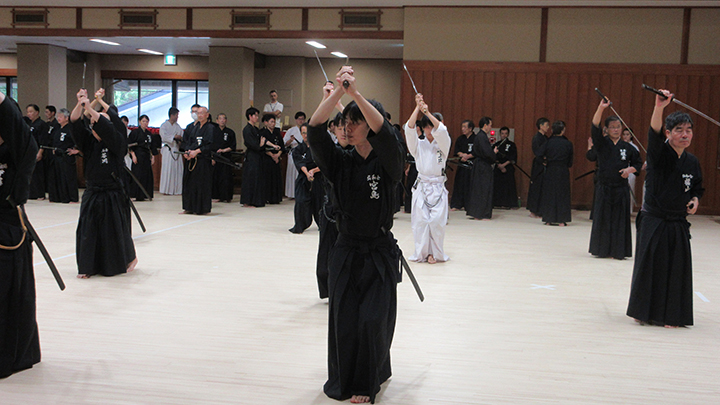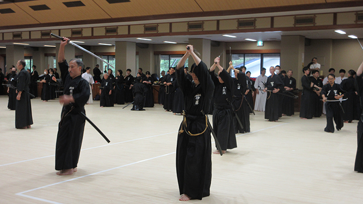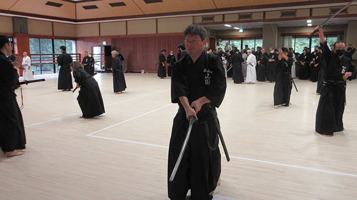 - 全剣連居合講習会と先月、宮城県で開催された中央・地区講習会の報告が8月18日(日)酷暑のもと、県立武道館にて178名が参加して行われました。
