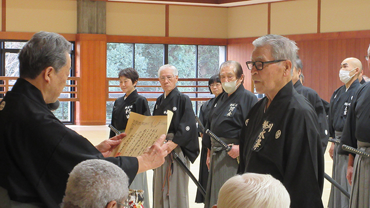 開会式で錬士号の伝達と令和5年度皆勤賞・精勤賞の表彰がありました。