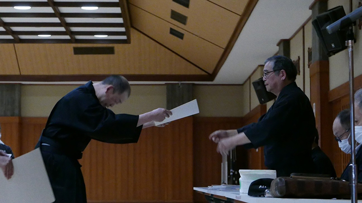 講習会に先立ち、三月に京都で行われた昇段審査の合格者への免状の授与がおこなわれました。